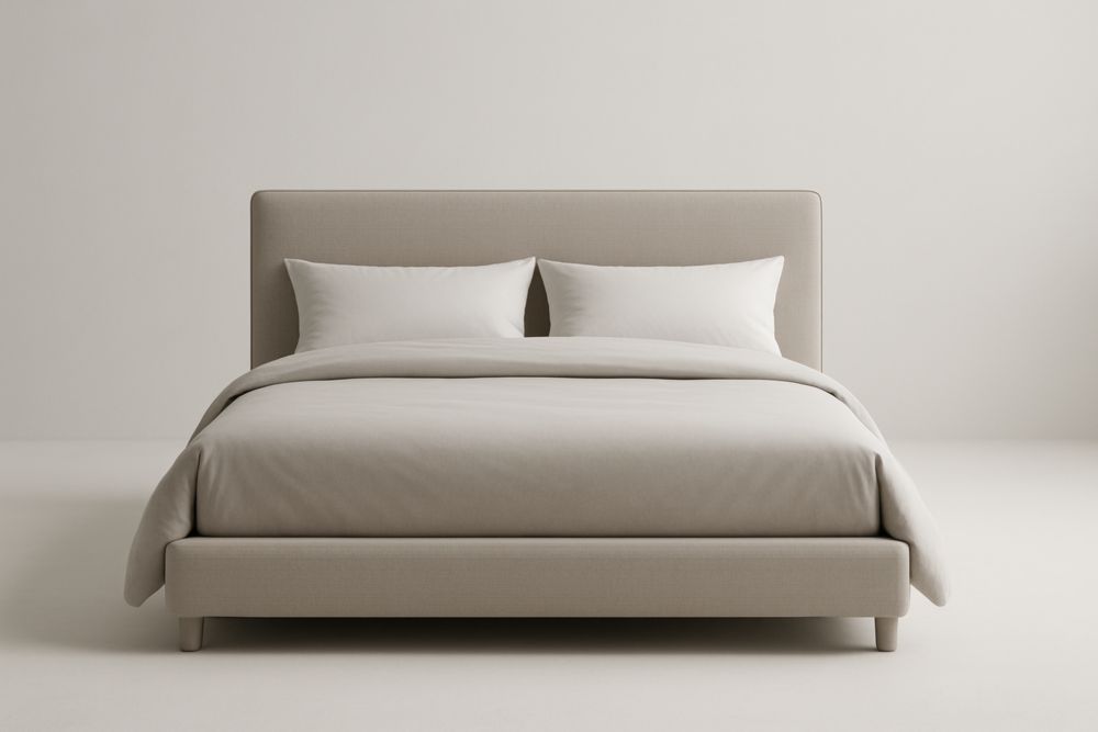 Letto Matrimoniale Imbottito Beige con Testiera in Tessuto