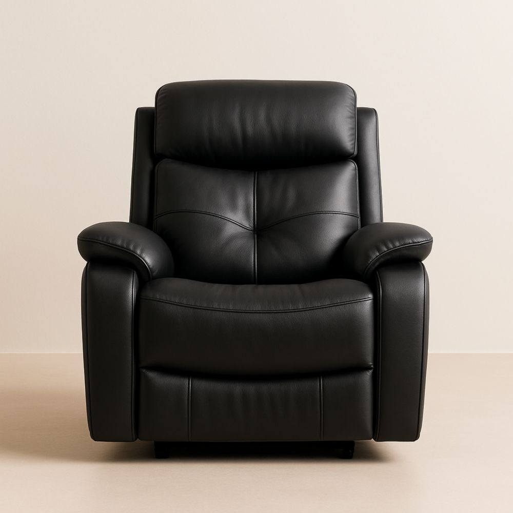 Poltrona con braccioli in ecopelle nera, imbottita in schiuma